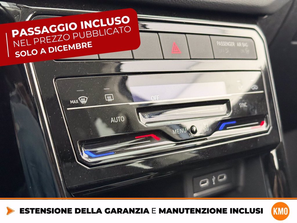 Cerchi in lega Manila 6,5 J x 17 Black con superficie diamantata Chiusura centralizzata Keyless-Entry senza dispositivo di sicurezza Safe Climatronic Air Care Climatronic con regolazione a 2 zone e filtro Codice Interno Cristalli posteriori e lunotto oscurati Edition Plus IQ.Drive Pack Light & Vision Pack Plus Radio Ready 2 Discover Ready for We Connect e We Connect Plus o VW Connect e VW Connect Plus Ruota di scorta Supplemento colore speciale e/o metallizzato TECH PACK Videocamera per retromarcia Rear view Volkswagen Extra Time 2 anni fino a 80.000 km