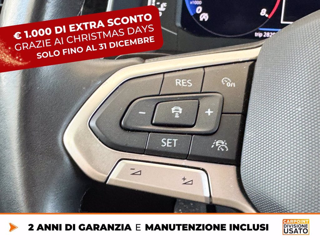 Adaptive Cruise Control - ACC Cerchi in lega Misano 7 J x 18 Black Volkswagen R con superficie diamantata e Climatronic Air Care Climatronic con regolazione a 2 zone e filtro Fari IQ.Light LED Matrix Keyless Entry & Go Radio Ready 2 Discover Ready for We Connect e We Connect Plus o VW Connect e VW Connect Plus Roof Pack Ruota di scorta in acciaio di dimensioni ridotte da 15 Supplemento colore speciale e/o metallizzato TECH PACK Tetto panoramico Videocamera per retromarcia Rear view Volkswagen Extra Time 2 anni fino a 80.000 km
